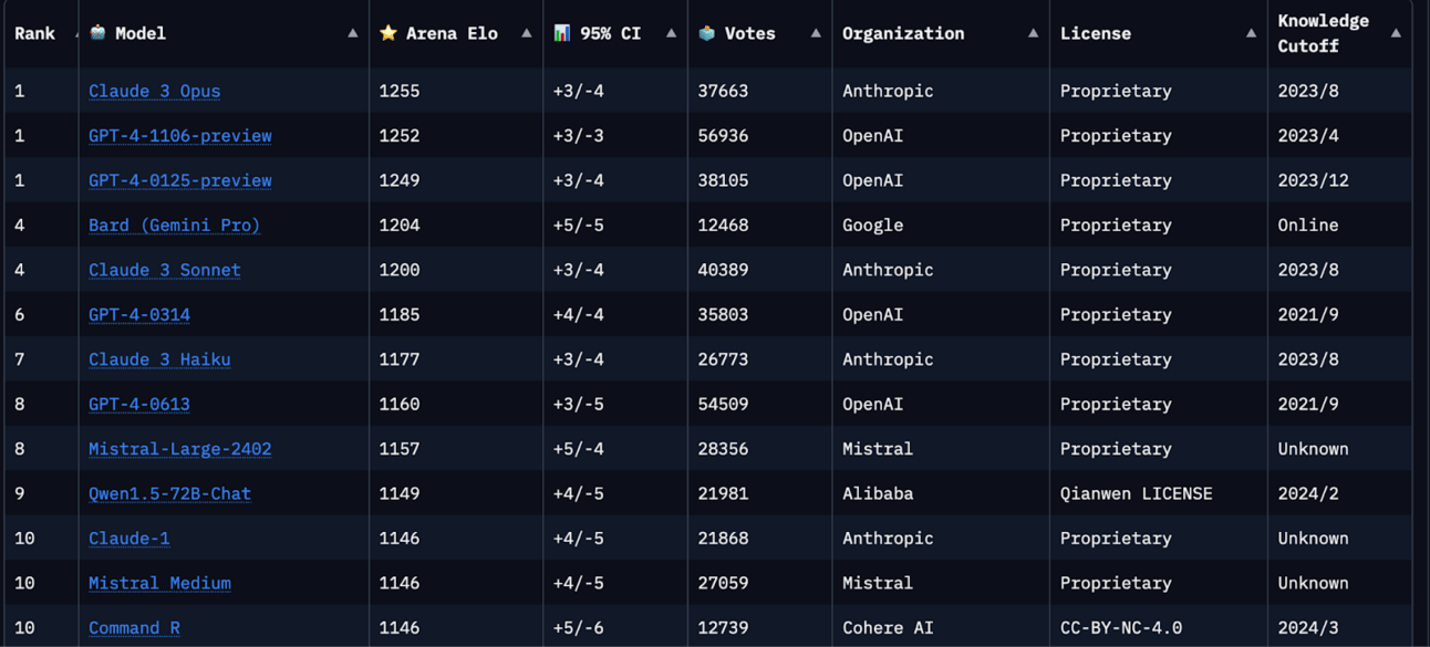 Pour la première fois dans la courte histoire de l’IA générative, Claude 3 Opus dépasse GPT-4.