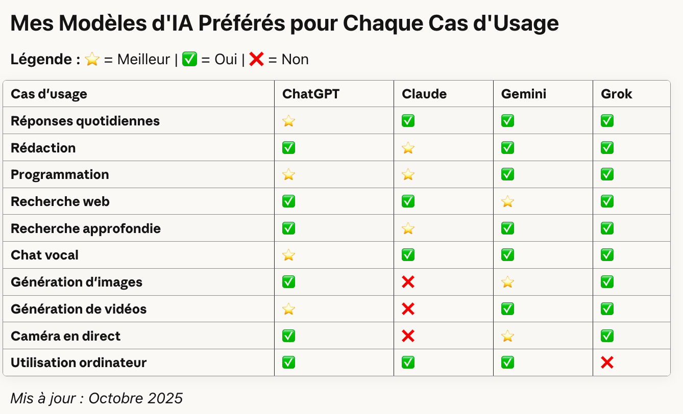 Comparatif des modèles d’IA par Peter Yang - Octobre 2025