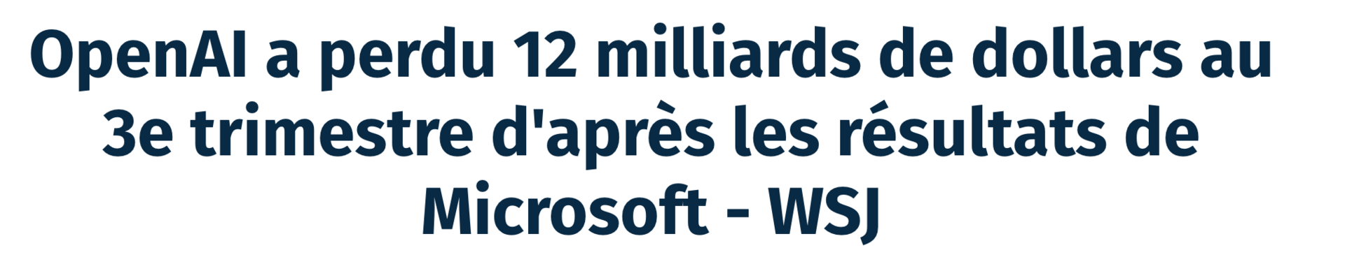 Plus largement, écoutez ce podcast du journal Le Temps : sans l'IA, la croissance américaine serait anémique. Les acteurs investissent les uns dans les autres, créant une interdépendance dangereuse. Si une bulle éclate, tout le secteur s'effondre. Et la croissance mondiale avec.