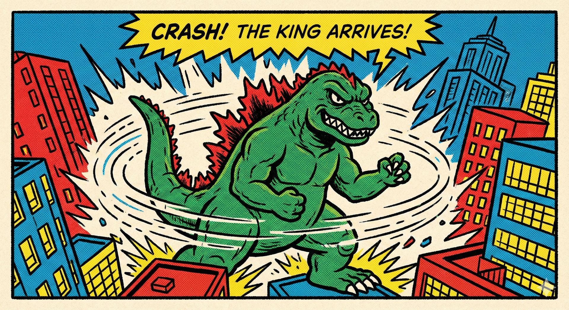 2D cartoon illustration of a [subject] charging forward in a [dynamic action pose], comic book style with bold black outlines and vivid primary colors. Inspired by classic superhero comics, with expressive motion lines, exaggerated perspective, energetic composition, and intense visual impact. High-quality print style.Merci pour la lecture de cette édition,