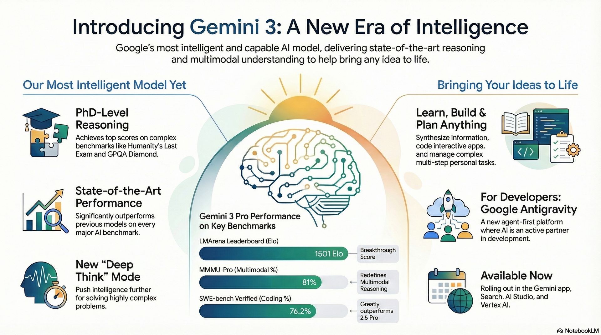 Google vient de dévoiler Gemini 3, son modèle d’IA le plus avancé à ce jour, conçu pour mieux raisonner, comprendre du multimodal (texte, image, vidéo, audio) et gérer jusqu’à 1 million de tokens de contexte pour des tâches longues et complexes. La version Gemini 3 Pro arrive et surpasse Gemini 2.5 Pro sur les principaux benchmarks, avec de gros gains en raisonnement, code, compréhension visuelle et fiabilité factuelle, tout en devenant plus “agentique” (capable de planifier et d’agir via des outils). Google annonce aussi Gemini 3 Deep Think, un mode de raisonnement renforcé destiné aux problèmes très difficiles, en cours d’évaluation sécurité avant un déploiement aux abonnés AI Ultra. Enfin, Gemini 3 est déjà intégré dans l’app Gemini, AI Studio, Vertex AI et même Search (AI Mode), signe que Google veut industrialiser son usage à grande échelle dans ses produits et pour les développeurs.