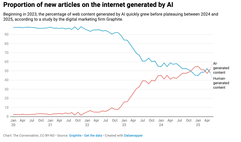 Pour la première fois en 2025, plus de contenu a été généré quotidiennement par l'IA que par les humains.